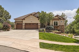 Nestled in Overlook at Bear Creek, a Sheffield Custom Homes enclave, this stunning ranch-style home with a finished walk-out basement captures the essence of Colorado living. Perched on a one-third-acre lot at the peak of the community, it offers sweeping mountain views from nearly every room. A long driveway, heated at the top, provides generous parking in addition to an oversized three-car garage.