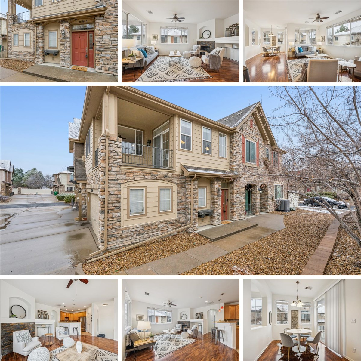 Extra-sharp 2-bedroom, 2-bath condo featuring an open floor plan and soaring ceilings. Warm, stylish flooring enhances the spacious living room, complete with a gas fireplace and custom entertainment built-ins. The kitchen is perfectly positioned next to the living and dining areas—ideal for entertaining—and offers a peninsula with additional seating, 42"cabinets, tile countertops, and stainless-steel appliances. Step out onto the private balcony to enjoy morning coffee and beautiful Colorado sunrises. The generous primary suite includes a walk-in closet and a 5-piece bath. A secondary bedroom offers easy access to a full hall bath with a beautiful vanity. Convenient laundry room with shelving. A charming nook provides space for a small desk or a cozy reading area. Additional highlights include new carpet, fresh interior paint, and central A/C to keep the unit comfortable all summer long. Attached two-car garage with finished walls and ceiling. Prime location with easy access to I-25, grocery stores, restaurants, entertainment, and more. Don’t miss this one!