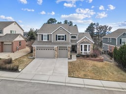 Welcome home to this immaculate semi-custom residence backing to a private wooded greenbelt with amazing mountain views. Offering 4 bedrooms plus a main-floor study, 5 bathrooms, and a 3-car garage, this beautifully maintained home blends thoughtful design with timeless finishes. A dramatic entry leads to a spacious study with custom woodwork, bay window seating, ceiling fan, and a stunning two-sided fireplace shared with the inviting living room. The formal dining room features a coffered ceiling and bay window—perfect for hosting gatherings. The updated kitchen includes custom 42” cabinetry, stainless steel appliances, hardwood floors, a large center island, and a sunny breakfast nook with sliding glass doors opening to the expansive backyard patio with gas firepit—ideal for Colorado outdoor living. The kitchen flows seamlessly into the family room with gas log fireplace, hardwood floors, and surround sound wiring. A convenient powder bath and spacious laundry room with custom cabinetry and hidden utility sink complete the main level. Upstairs, the vaulted primary suite offers beautiful mountain views, a gas fireplace, five-piece bath, and generous walk-in closet. One secondary bedroom features a private ¾ bath, while two additional bedrooms share a Jack-and-Jill bath. The finished lower level includes an additional ¾ bath for added flexibility. The 3-car garage offers abundant cabinetry, hoist system, and hot/cold water access. Located on a quiet cul-de-sac street near Plum Creek Golf Club and minutes from historic downtown Castle Rock with a low monthly HOA—this home truly has it all!